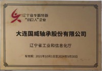 2021年10月1日,大連國(guó)威軸承股份有限公司獲得省級(jí)‘’專精特新小巨人‘’榮譽(yù)稱號(hào)。